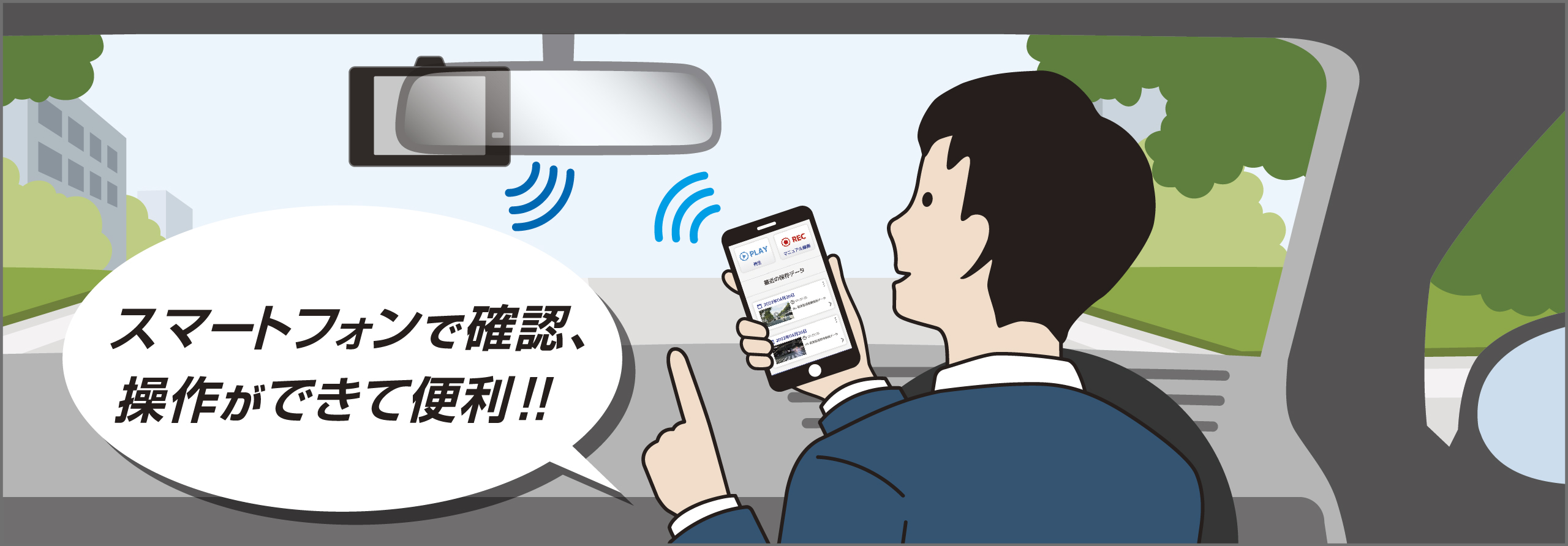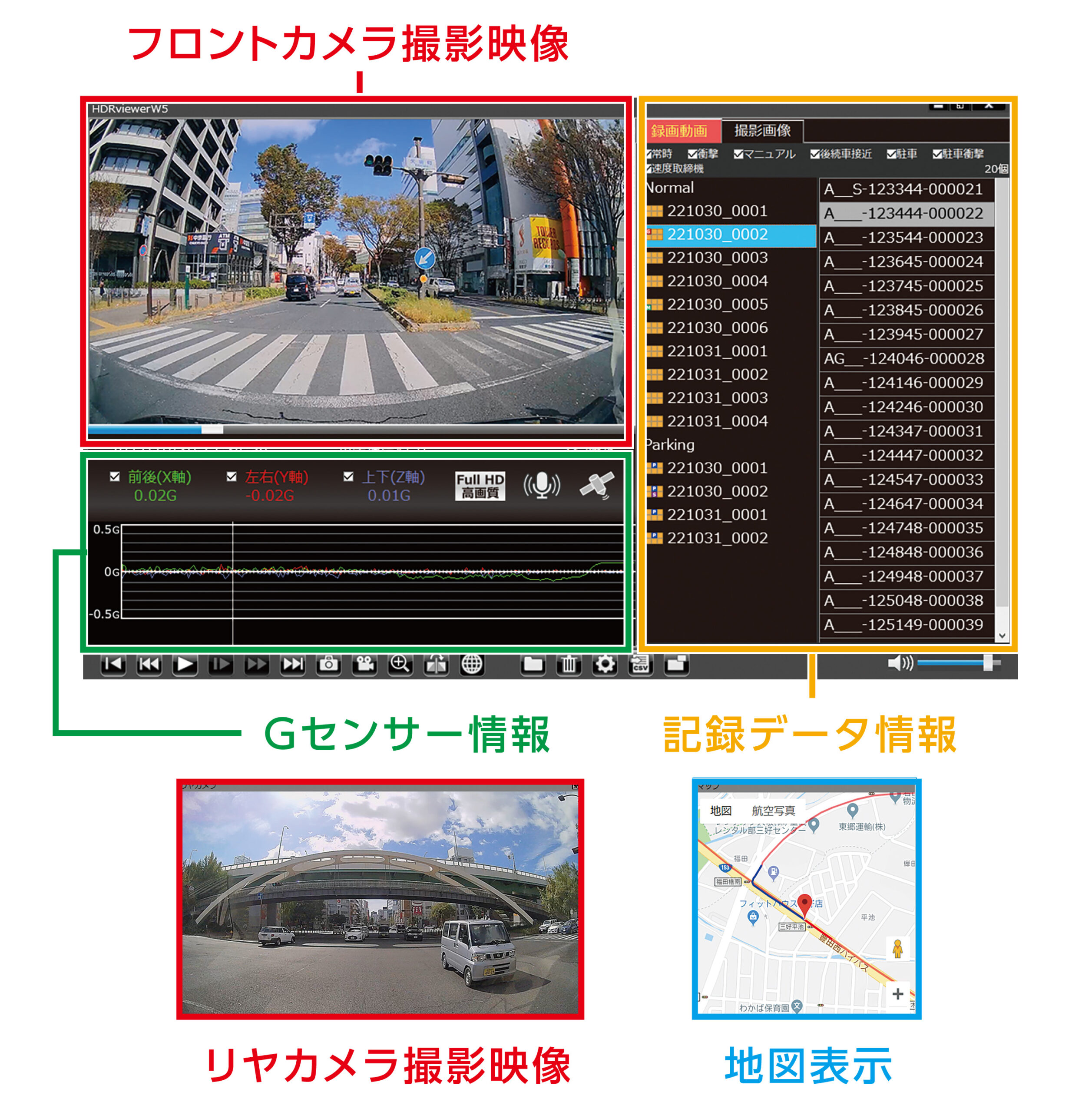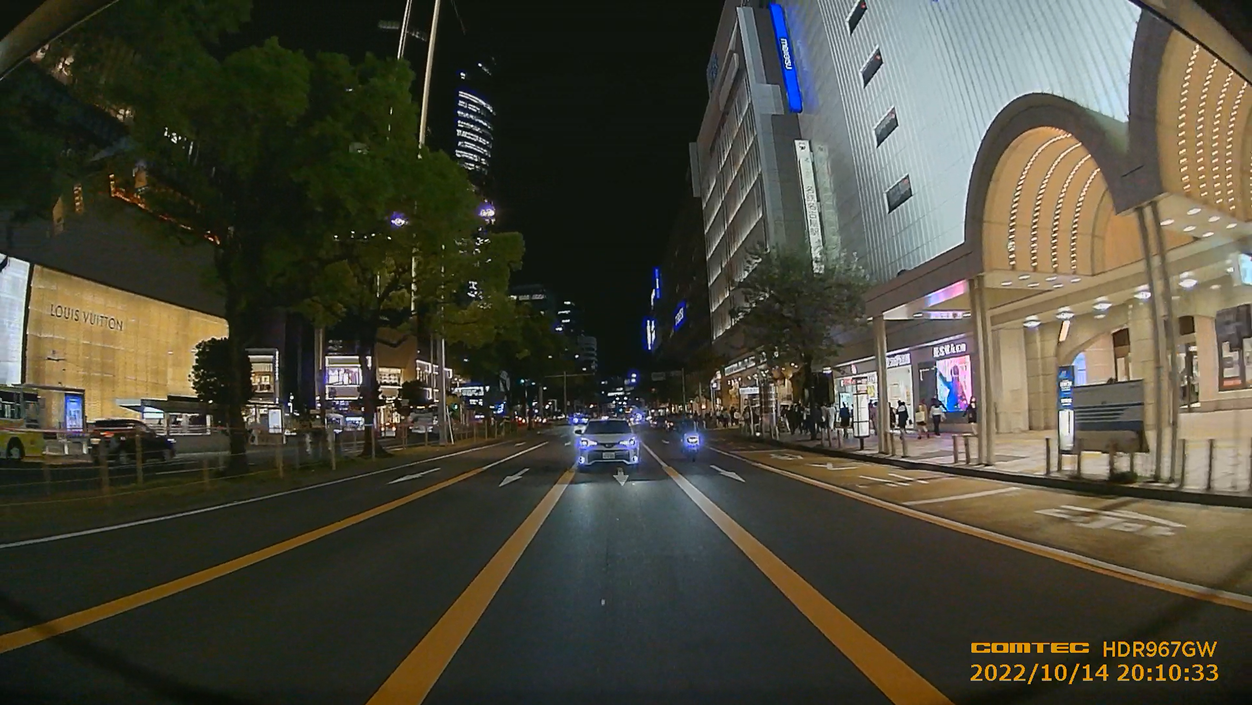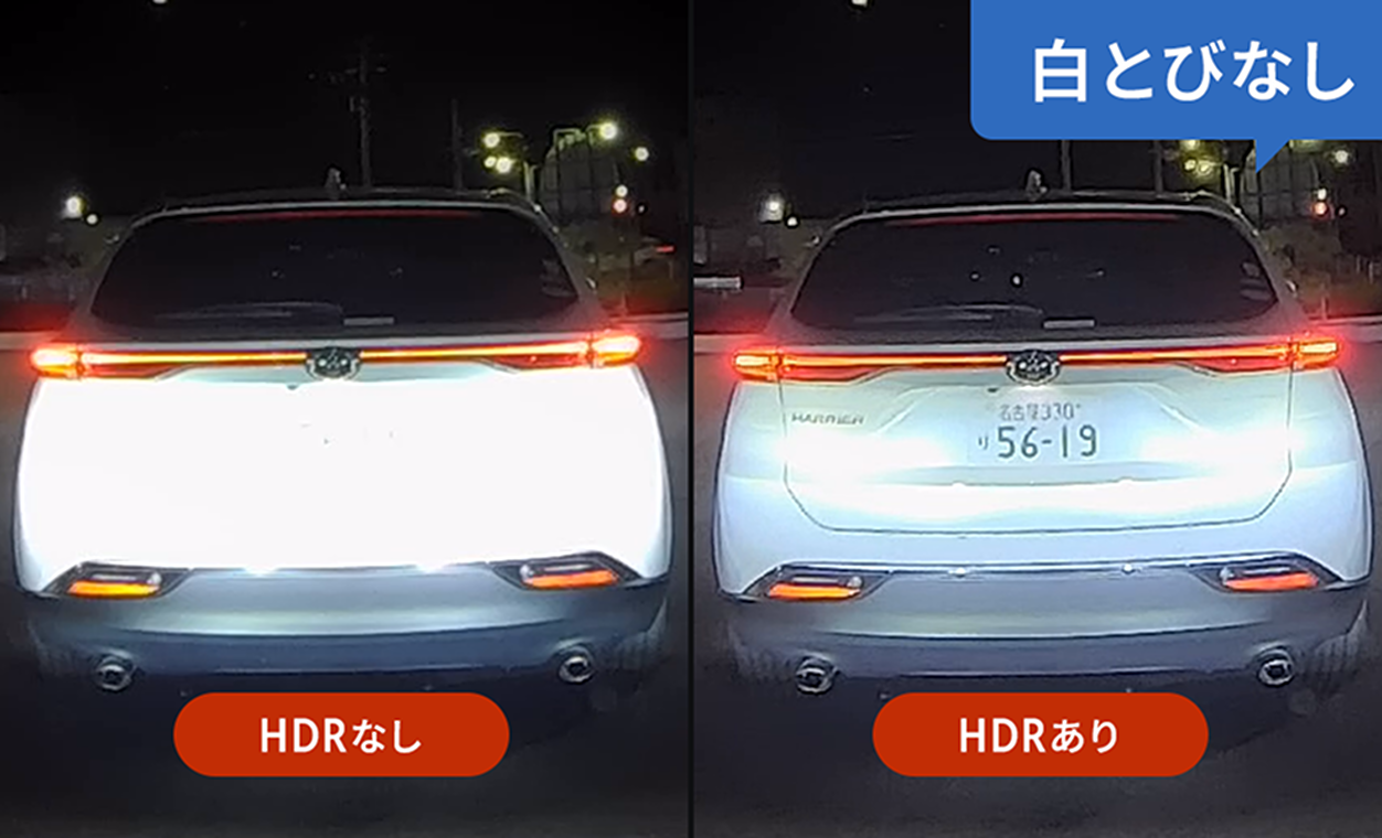 ※ リヤカメラに赤外線LEDを搭載していないため、夜間の明かりが少ない場所などでは、運転者が見えにくい映像が記録される場合があります。