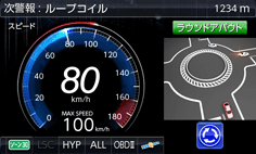 OBDⅡ接続により 正確な車両情報を取得できるため、 GPS が途切れても自車位置を見失いません! さらにタコメーター、燃費、ブーストなど様々な 車両情報をリアルタイムに取得表示できます。 |