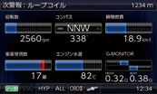 | 時計/速度/進行方向/標高/GPS情報/車両電圧/パワーチェックGモニター/走行距離/運転時間/ドライブインフォ | ● | |||