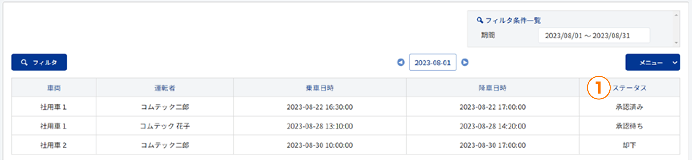 | ・ | 手動入力された走行記録の承認や却下、削除を行う事ができます。 |