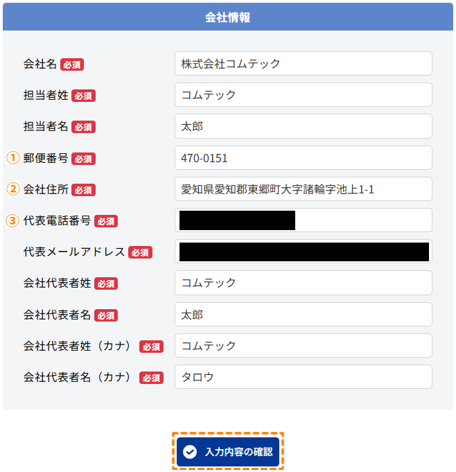 編集したい項目を入力のうえ、[入力内容の確認]をクリックします。 | ||||||||||||