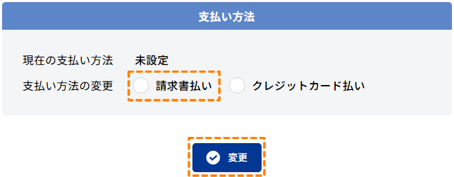 支払い方法から「請求書払い」を選択し、「変更」をクリックします。 |
