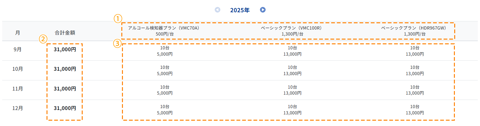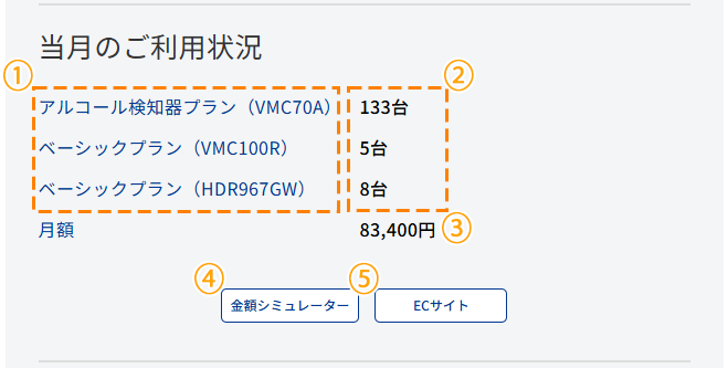 | ④ | 金額シミュレーター: | 利用台数に応じた試算ができます。 | |