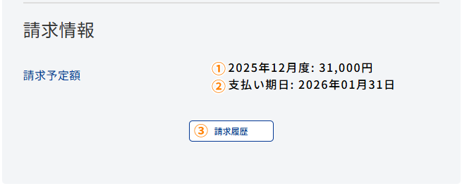 次回請求金額および過去の請求履歴が確認できます。以下手順にてご確認ください。