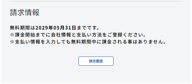※無料期間中に会社情報および支払い方法の入力にご協力ください。