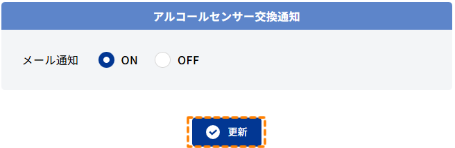 | ※以下ページのイメージはアルコールセンサー交換通知の設定画面イメージです。 | |