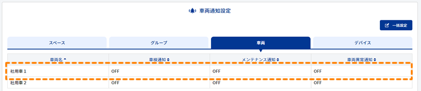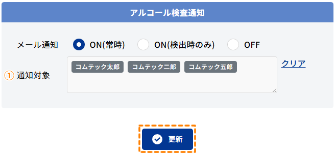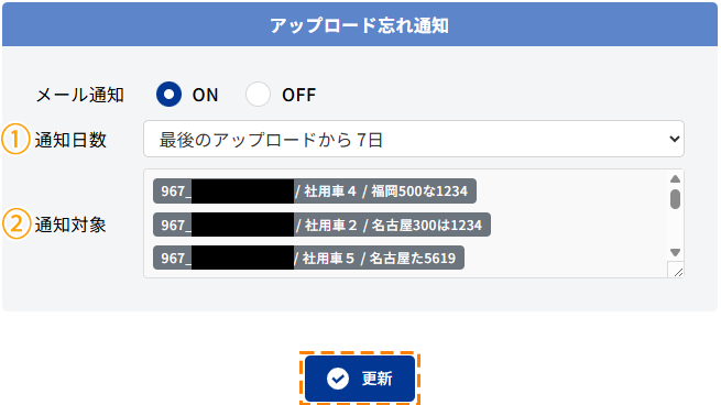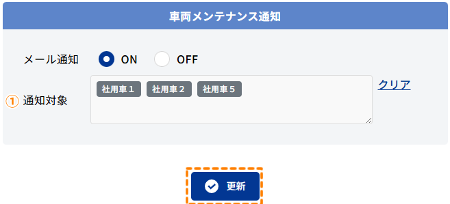 | ① | 通知対象 | : | 通知対象とする車両を選択してください。 |
