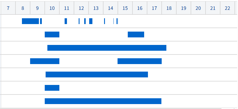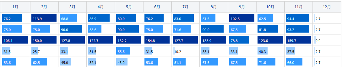 | 年単位の稼働率を数字と棒グラフで示し、棒グラフの色は稼働率が高いほど濃く表示されます。 |