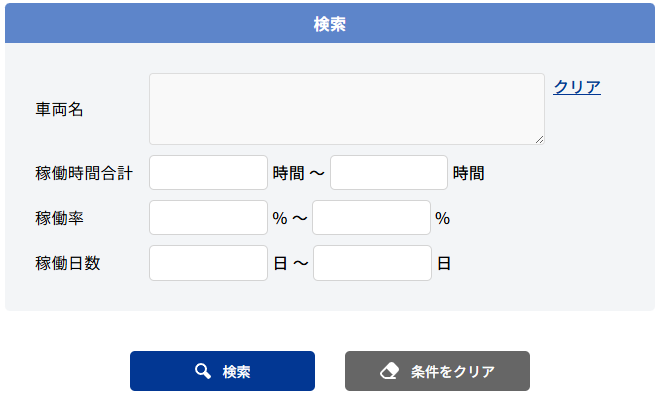 以下の項目からフィルタをかけたい項目を入力・選択し、[検索]をクリックしてください。