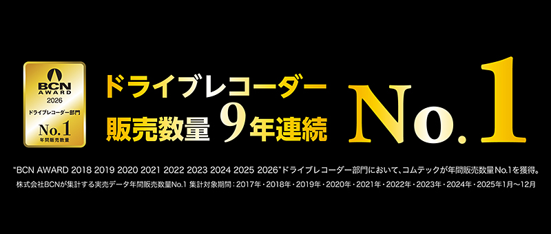 『BCN AWARD 2026』ドライブレコーダー部門において 9年連続となる販売数量No.1を獲得いたしました