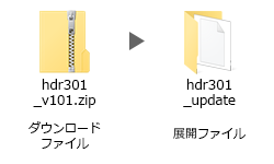 | 2. | 展開した【hdr301_update】フォルダの中に、【FW_HDR301_1.0.1.bin】というファイルがあることを確認します。 |